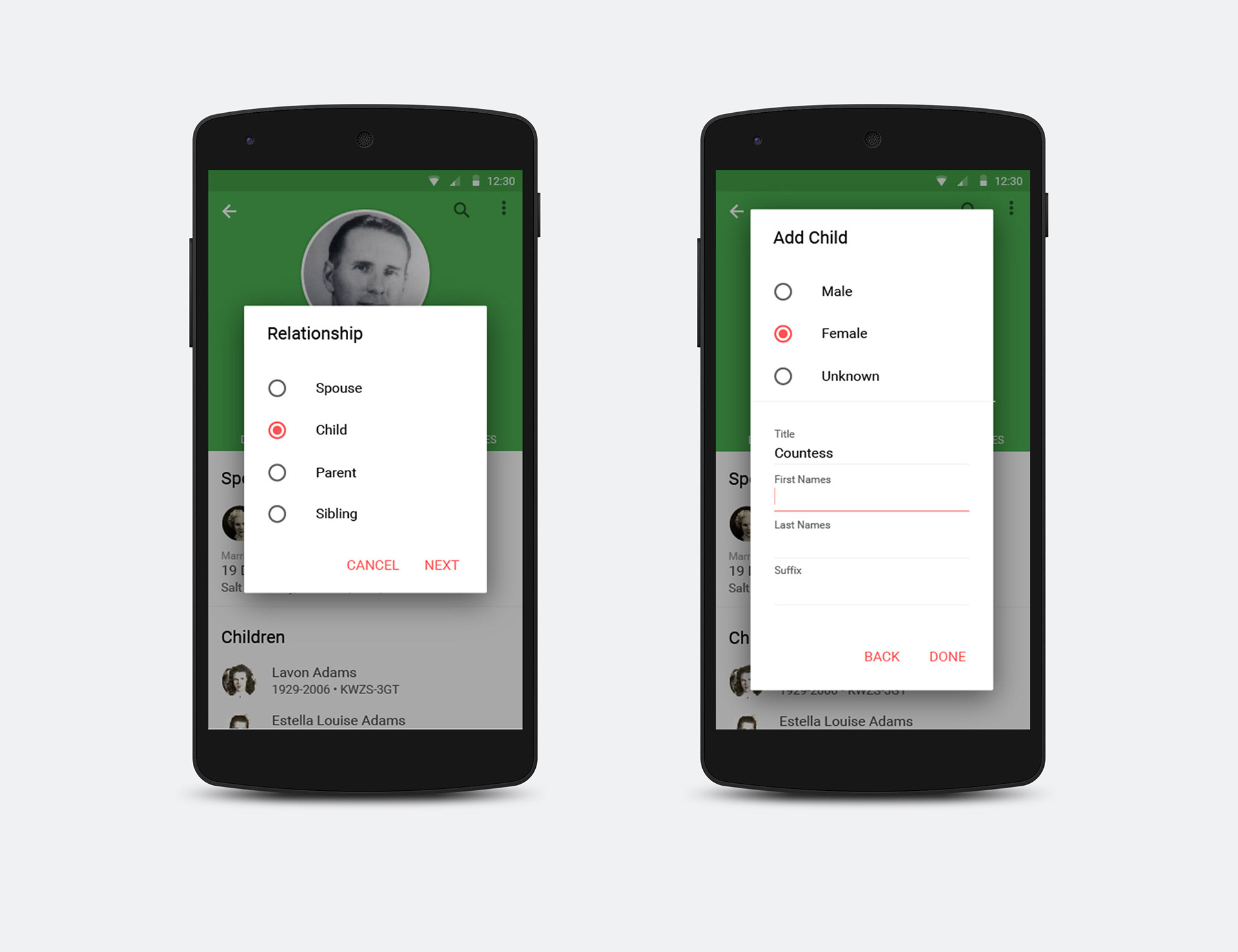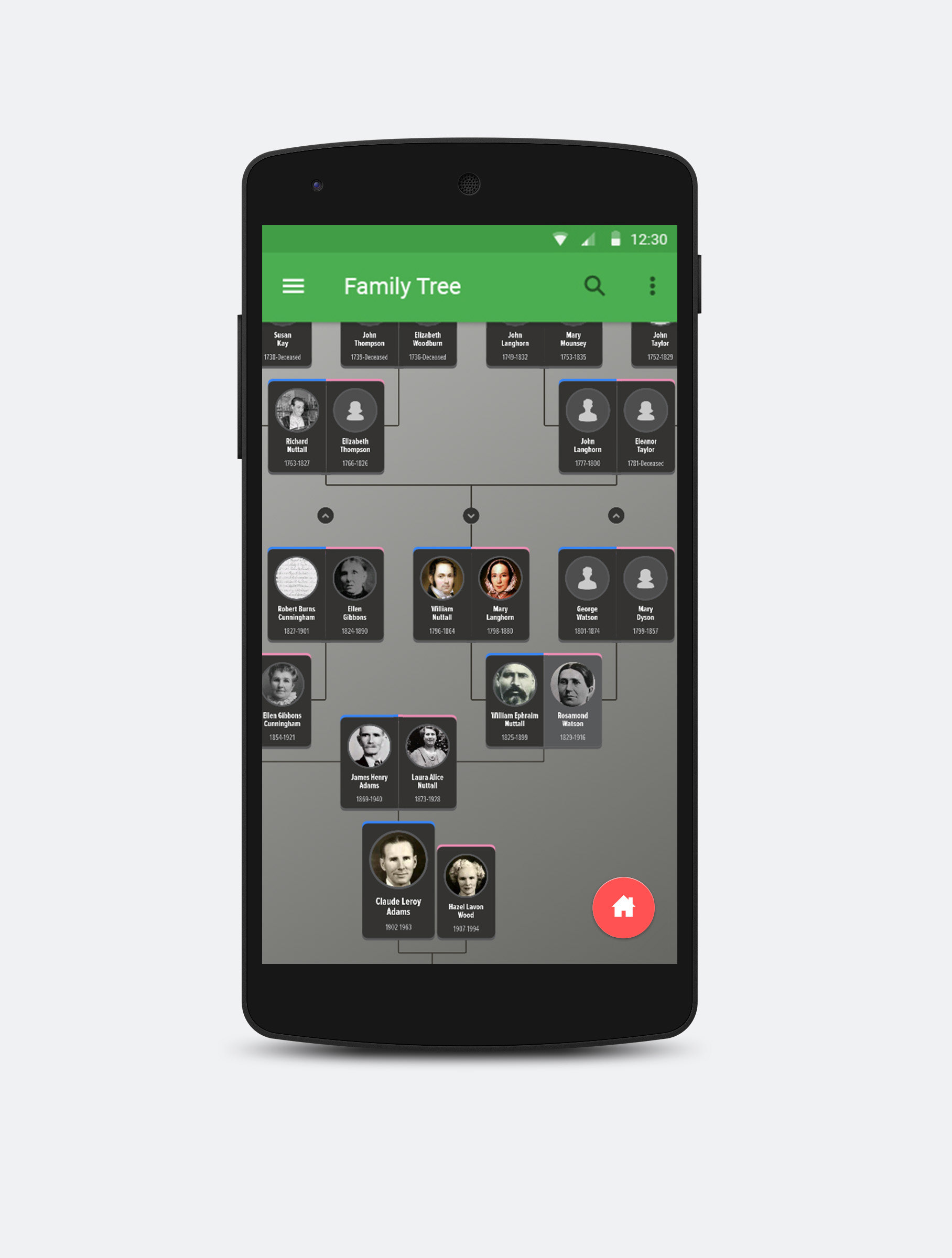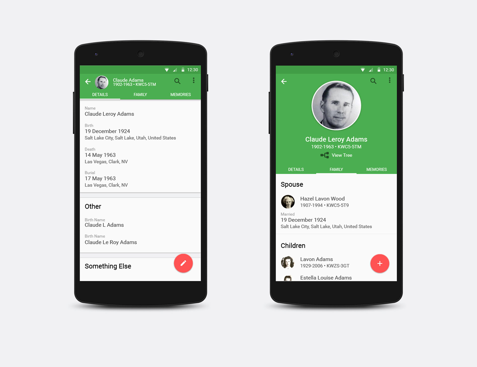 This was a redesign of the FamilySearch tree app for Android. I was asked to make it follow the material design style guieds.